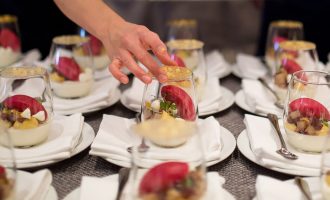 A díszterem befogadóképessége körasztalos ültetéssel 220 fő.
